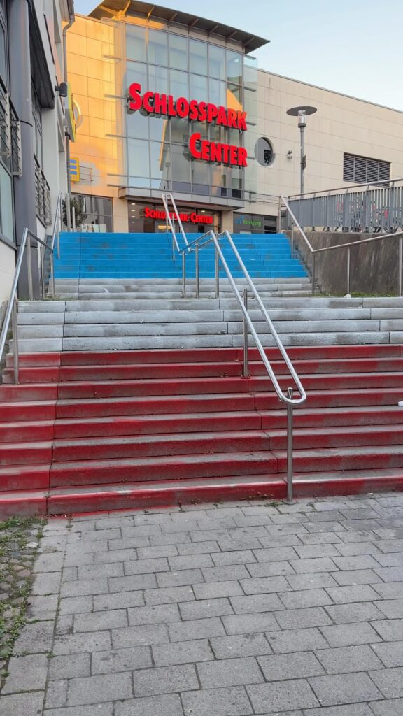 Großflächiges Graffiti am Schlosspark Center in Schwerin? Wir haben schnell reagiert und die Treppe wieder sauber in ihren ursprünglichen Zustand versetzt.